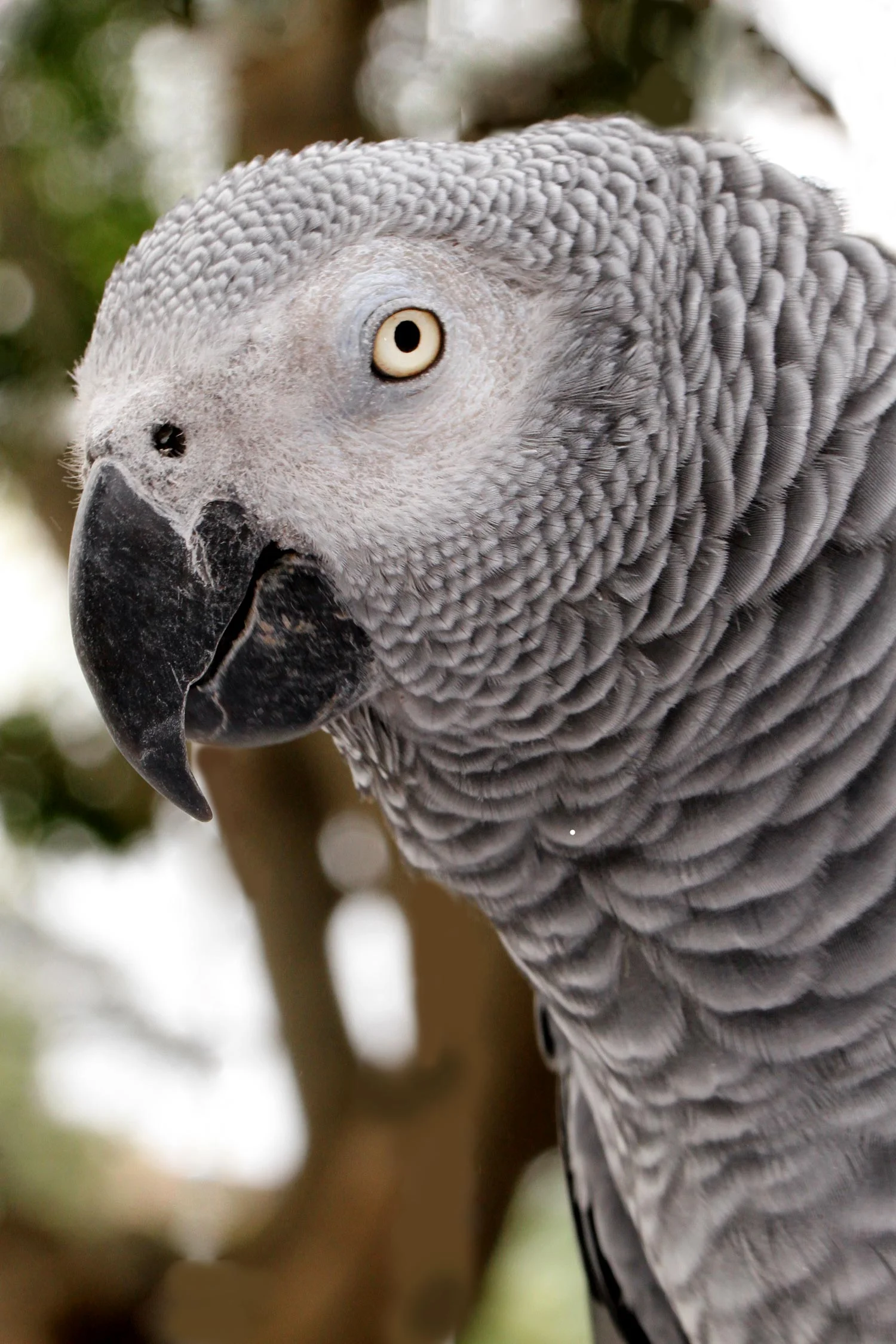 During the summer of 2014, a beautiful, but very anxious, African Grey named Zoe came to our sanctuary. When we first met her, she was not able to tolerate much in the way of social interaction or outside noises and distractions. Throughout the past year, several volunteers and junior docents have put in countless hours of love and affection, trying to bring her out of her shell. She is also proudly sponsored by one of her admirers, Pam Barkowski.